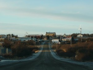 | The road leading to Downtown Naknek, from the cannery. The brown building you see on the top of the hill is the edge of ‘town”. |