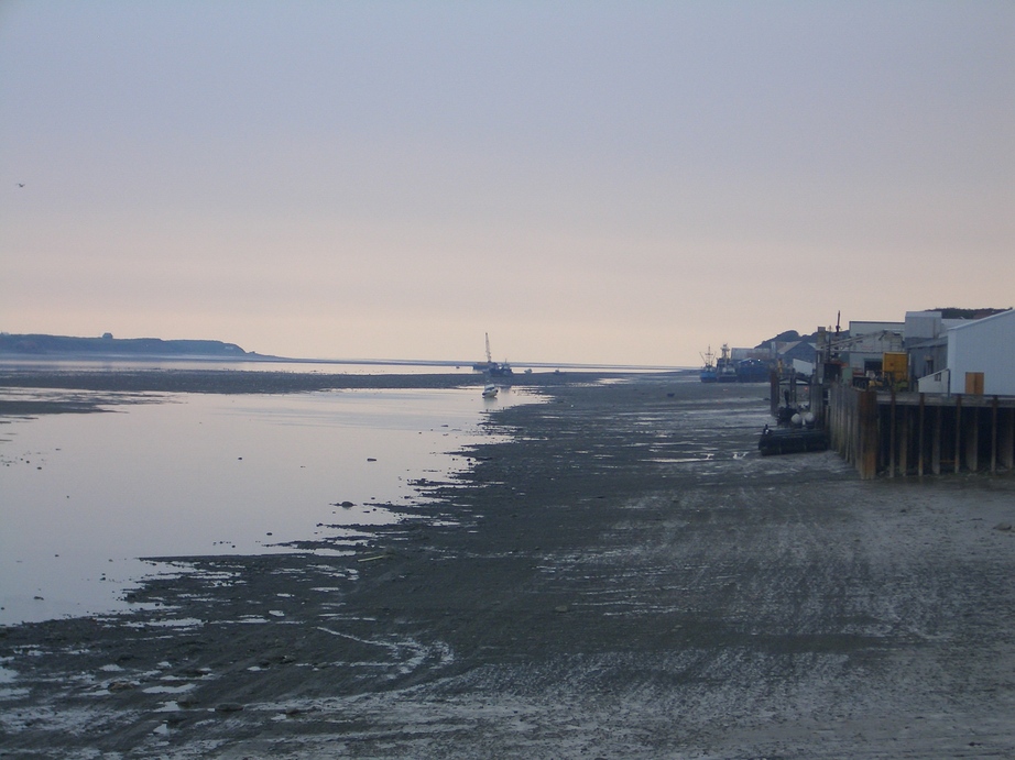 | Naknek river at low tide, looking out of the breakroom. |