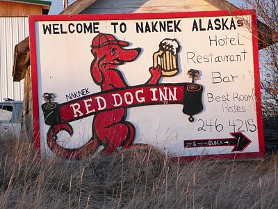 | The cannery itself is on the bank of the Naknek River, along with lots of other companies canneries, like Peter Pan, who Daniel’s boat sells to. We both worked at the main plant, Sue in the “Egg House” processing salmon roe and Corinne in the Cannery running the “lid feed machine”. We stayed in the upstairs of Bunkhouse 88, one of the many packed two story dorms with seemingly hollow wooden floors where you can hear every ones echoing footsteps. Our window looked out onto the entire camp, a much better view than most people had. Here is the sign from the road. |