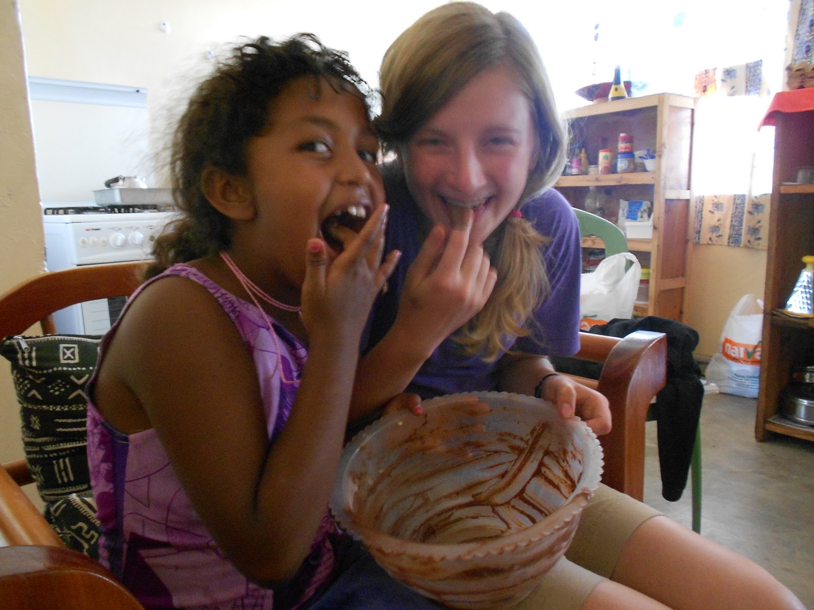| Making brownies with shalana, one of the Celia and Petterson’s kids |
