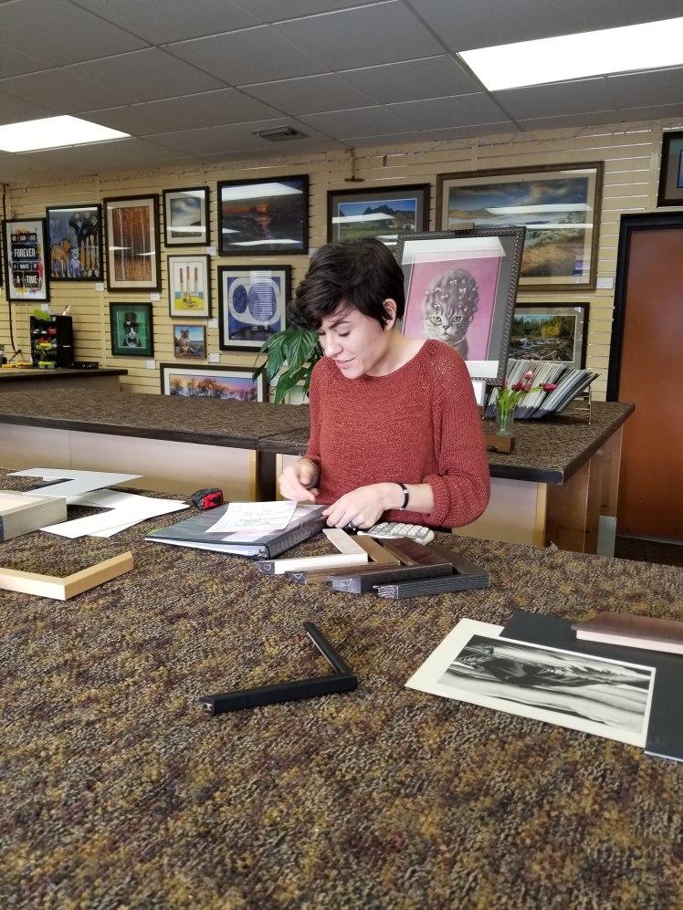 I dropped Sue off at the frame shop and then Chris and I went to Life Source to get her a lunch. I always try to pick out food that I think Sue will like the best. She likes healthy stuff, so I got her some quinoa salad and some sweet potato thing. I try not to linger inside her work too long because I don’t want to get her in trouble, but I love seeing her working on frames and helping customers. She does such a good job.