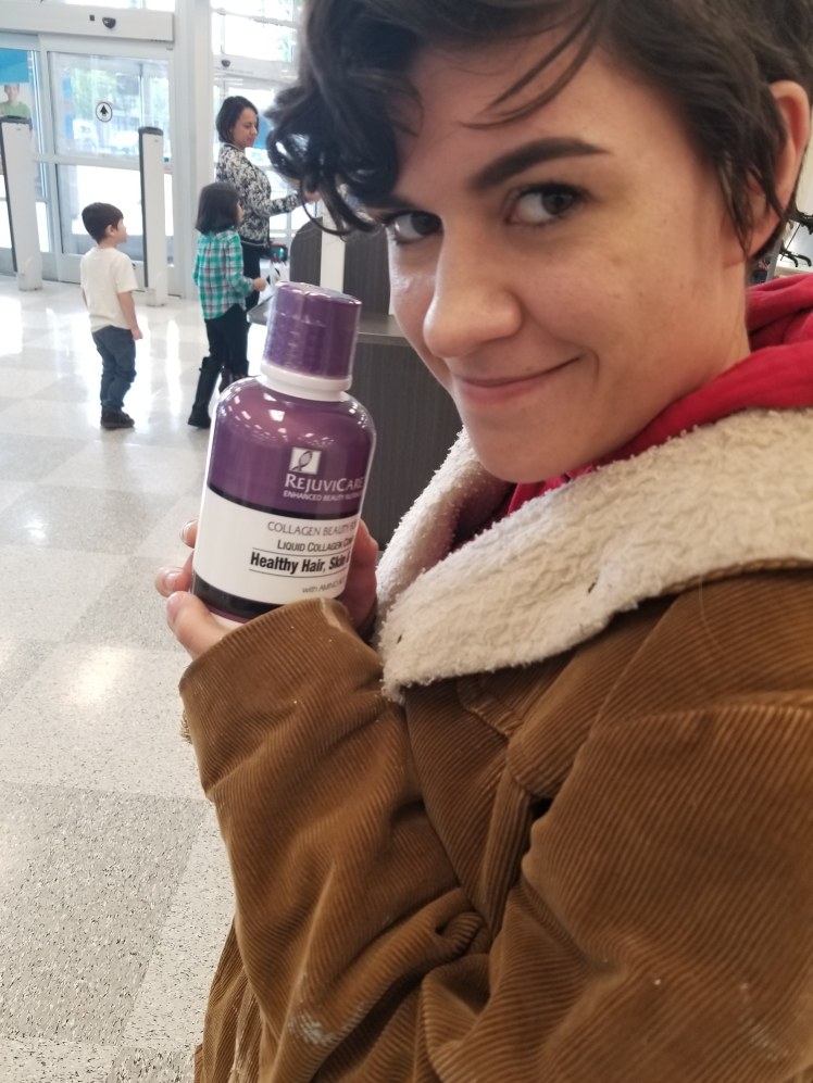 Sue asked me to bring her dry shampoo and I set it by the door and everything but still forgot it! I couldn’t believe it. We stopped off at a store looking for dry shampoo because I felt like I had to make up for forgetting it. We didn’t find any that would work with Sue’s tar black hair, but we did find some collagen. It was grape flavored. It tasted like drinking gum.