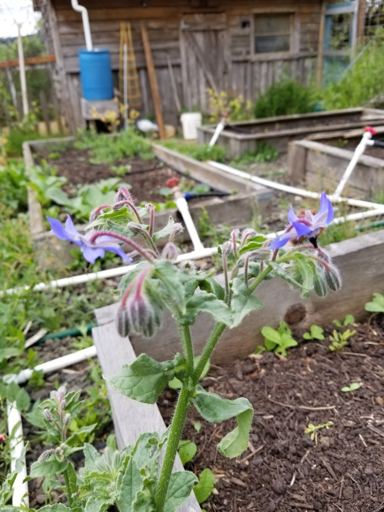 It was dark when we came in. I gave our raised bed a drink. Some things are starting to flower. I’m so excited to eat from it.