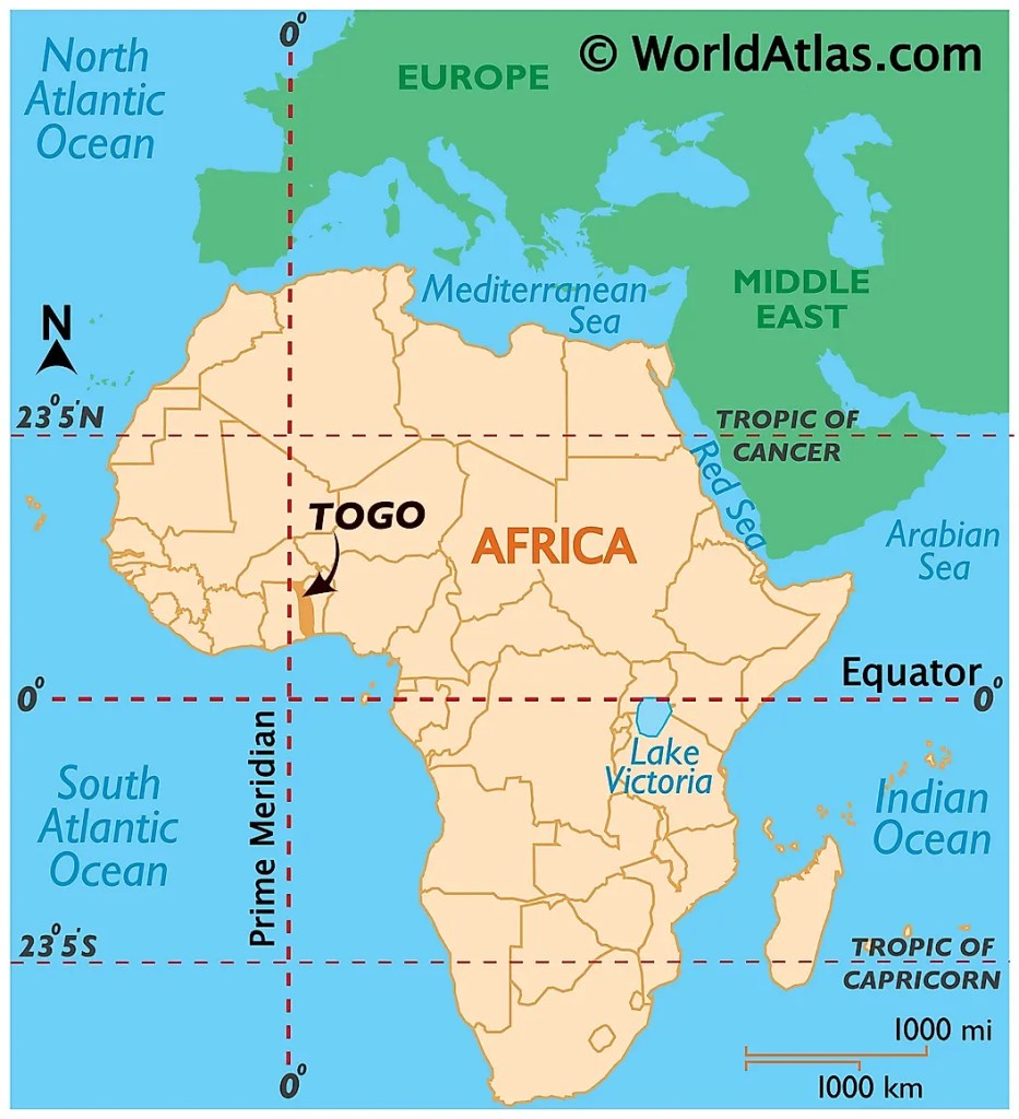 Togo is a small West African country situated between Ghana to the west and Benin to the east, with Burkina Faso to the north. It boasts a diverse landscape that ranges from sandy beaches along the Gulf of Guinea to lush hills and savannas. Togo’s capital, Lomé, is known for its vibrant markets, rich culture, and the striking independence monument that symbolizes the country’s history. The nation is home to various ethnic groups, each with its own traditions, languages, and customs, creating a rich tapestry of cultural heritage.